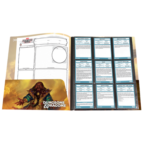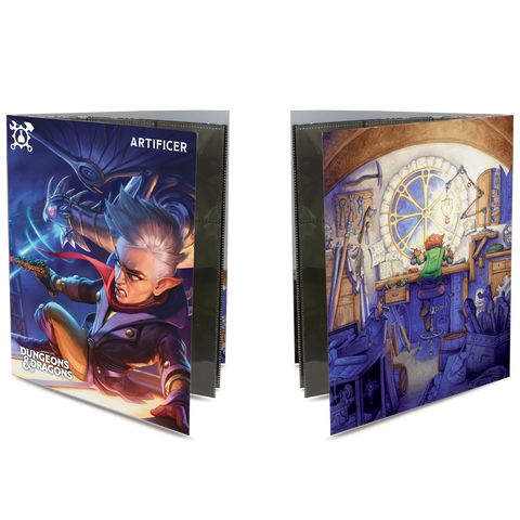• Officially licensed by Dungeons & Dragons • Cover features iconic Artificer artwork • Includes 10 single-pocket pages for character sheets and notes, and two 9-pocket pages for standard size spell cards • Includes inner cover pockets for additional storage and a sticker sheet to help keep your adventures organized • Classes available: Artificer, Barbarian, Bard, Cleric, Druid, Fighter, Monk, Paladin, Ranger, Rogue, Sorcerer, Warlock, and Wizard