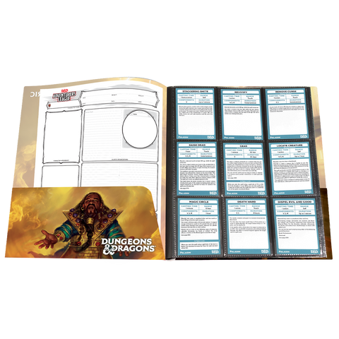 • Includes 10 single-pocket pages for character sheets and notes, and two 9-pocket pages for standard size spell cards