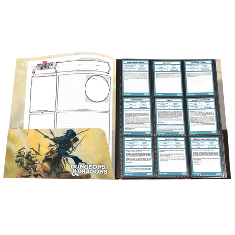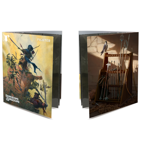 • Officially licensed by Dungeons & Dragons • Cover features iconic Fighter artwork • Includes 10 single-pocket pages for character sheets and notes, and two 9-pocket pages for standard size spell cards • Includes inner cover pockets for additional storage and a sticker sheet to help keep your adventures organized • Classes available: Artificer, Barbarian, Bard, Cleric, Druid, Fighter, Monk, Paladin, Ranger, Rogue, Sorcerer, Warlock, and Wizard